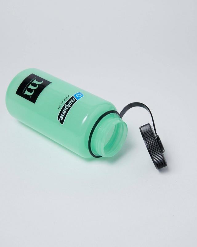 ナルゲンの広口1.0L グローのムラコ別注モデル。蓄光で夜間に光を発するグローインザダーク仕様です。グリーングローカラーのボトルにmロゴを配しました。 飲料はもちろん、お菓子や行動食を入れて使うこともできます。 材質は透明性、強度、耐熱性に優れたEastman社のTritan™(トライタン樹脂)を使用しています。パッキンがない構造でありながらも高い密閉性を誇り、洗いやすく衛生的です。