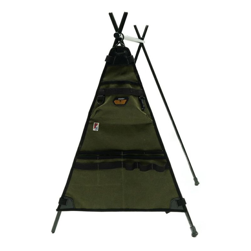 焚き火の火の粉などが当たっても燃え広がりにくく、インディアンハンガーのサイドポケットとして、キッチン周りの用具やガストーチ、手袋などを収納出来ます。