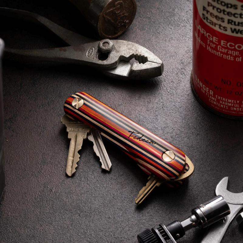 ナイフは、人の手で扱う道具だからこそ、手にしっくりくる形が求められます。私たち FEDECAは、そんな「手に馴染む ものづくり」を大切にしてきました。その想いを、ナイフ以外のかたちで表現したのが、この『FEDECAキーオーガナイザー』です。