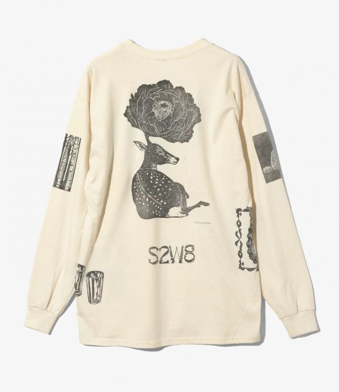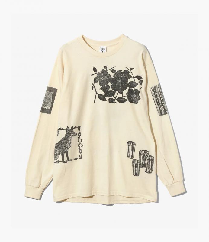 北海道の版画家・北村太氏と〈SOUTH2 WEST8〉によるコラボレーション。北海道の動植物やトラウト、名山などを題材にした版画アートをモノクロプリントで表現し、ユーモラスで緻密な世界観を落とし込みました。北村氏の視点で再解釈されたオリジナルロゴもポイント。スウェットパーカ、ロングスリーブTシャツ、グロッサリーバッグなど全6型で展開されます。