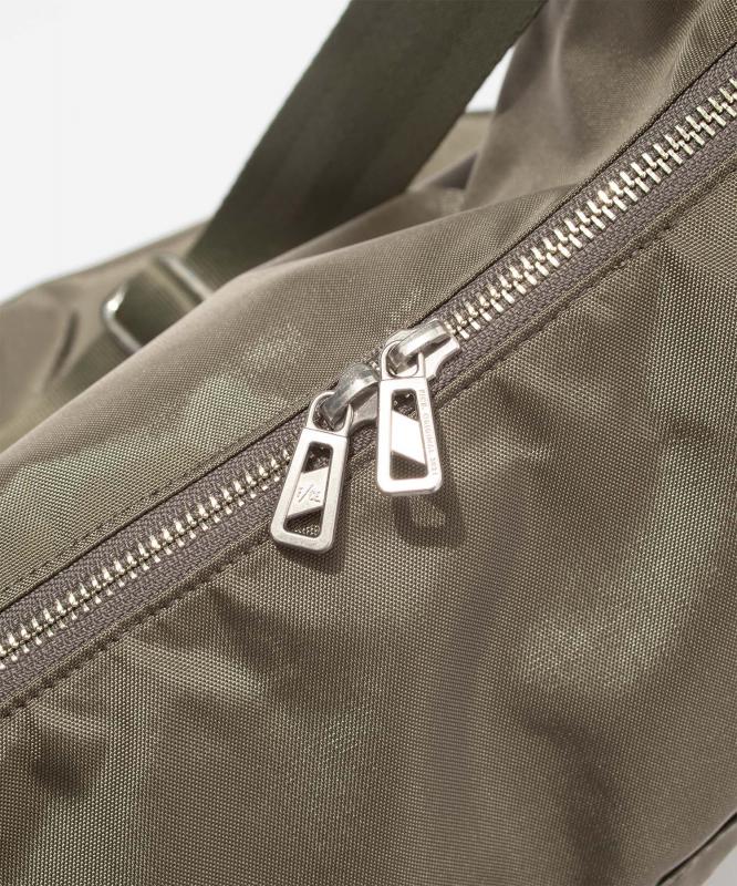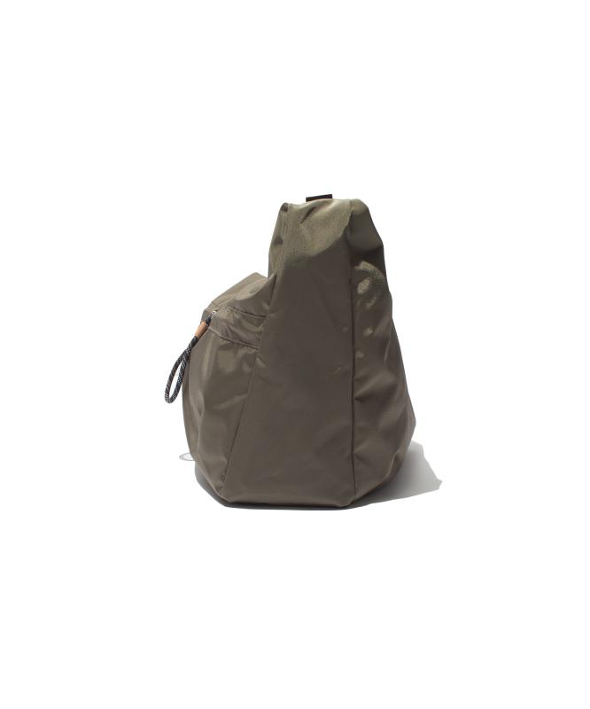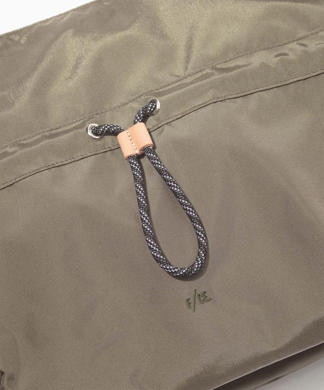 2way仕様のショルダートートは、ドローコードなどでシルエットの調整が可能。またメッセンジャーのようなボディバックとしても使用可能です。