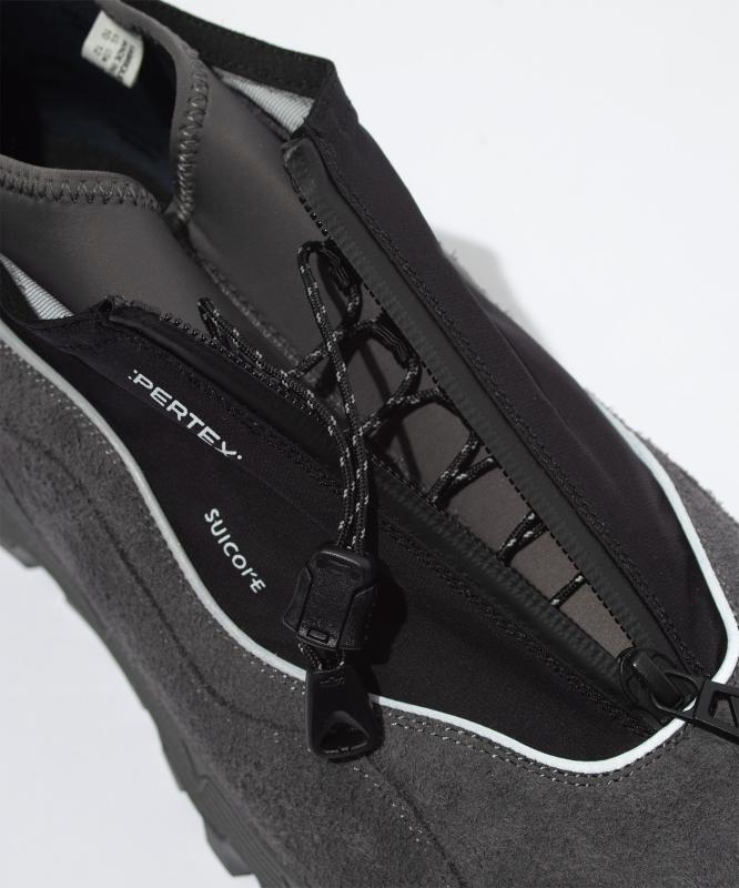 アッパーのナイロン部分はF/CEのアパレルで使用しているPERTEXR SHIELDを使用。
