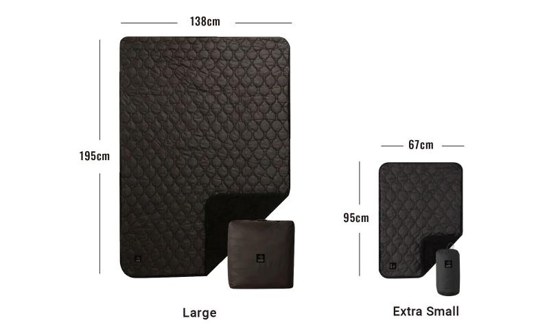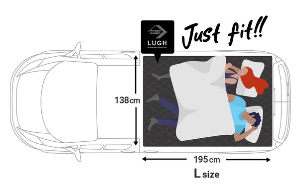 Lサイズは、ミニバンのリアシートをフルフラットにした時のフラットエリアに合わせたサイズ。掛けても敷いてもちょうどいいサイズ感。