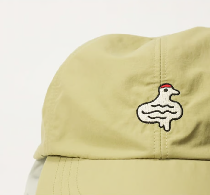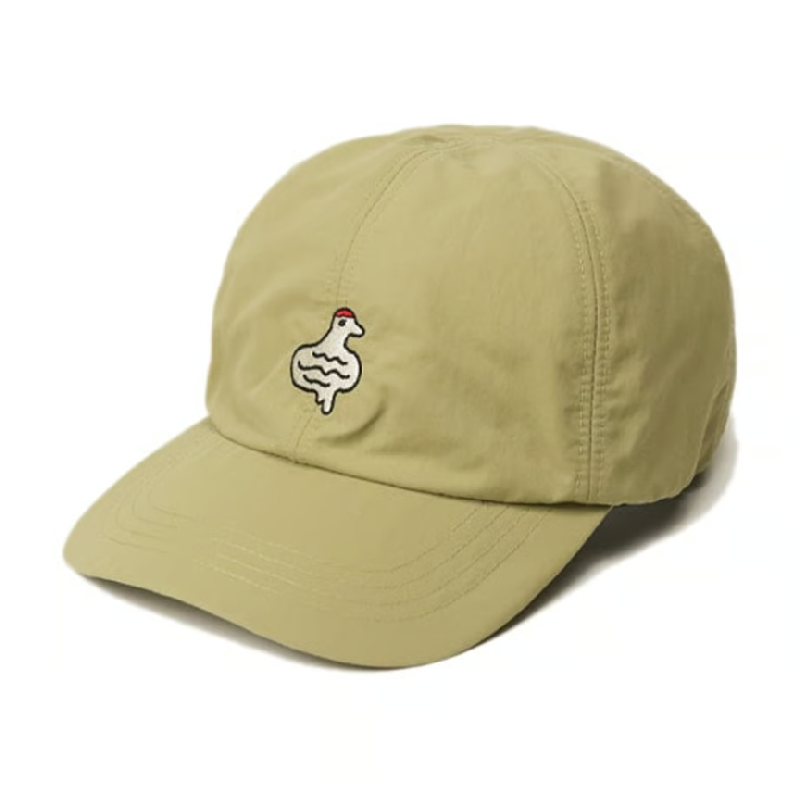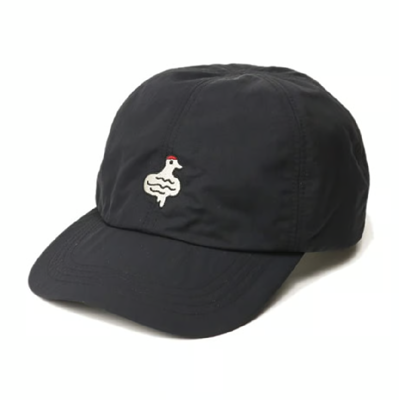 防水性、撥水性、透湿性を兼ね備えたナイロン6パネルの雷鳥キャップ。