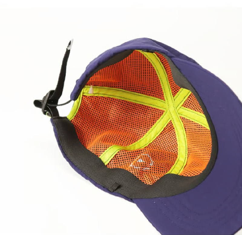 ・裏地にはメッシュ生地を使用し、アジャスターの片側には平ゴムを使用しフィット性を高めるなど、機能面を考慮しています。