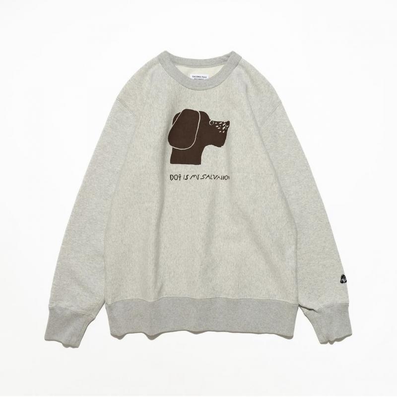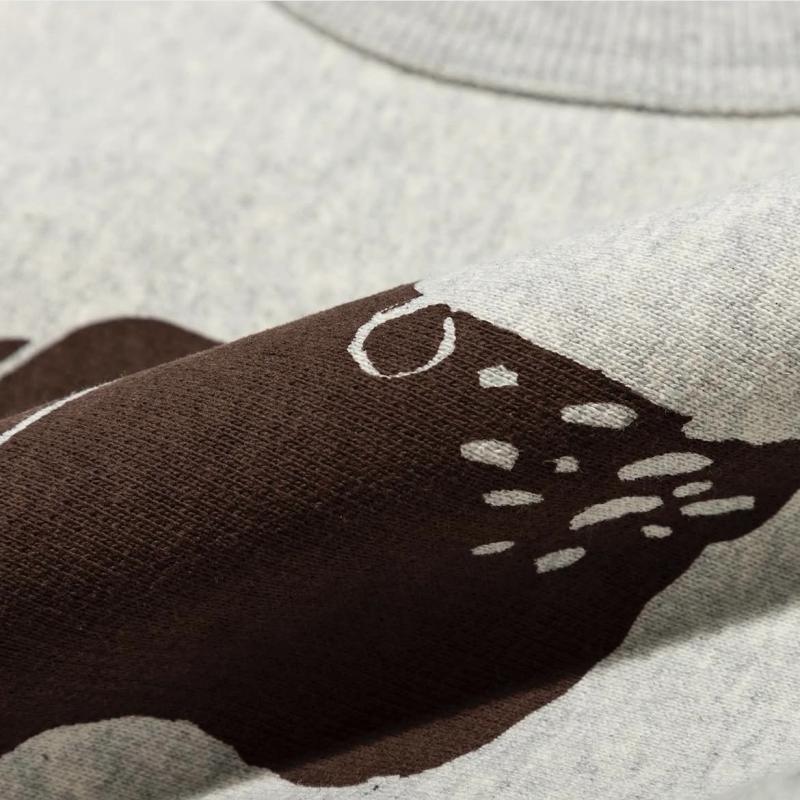 オートミールxブラウンの配色、アートワークとの相性も素晴らしい万能選手なクルーネックになりました。