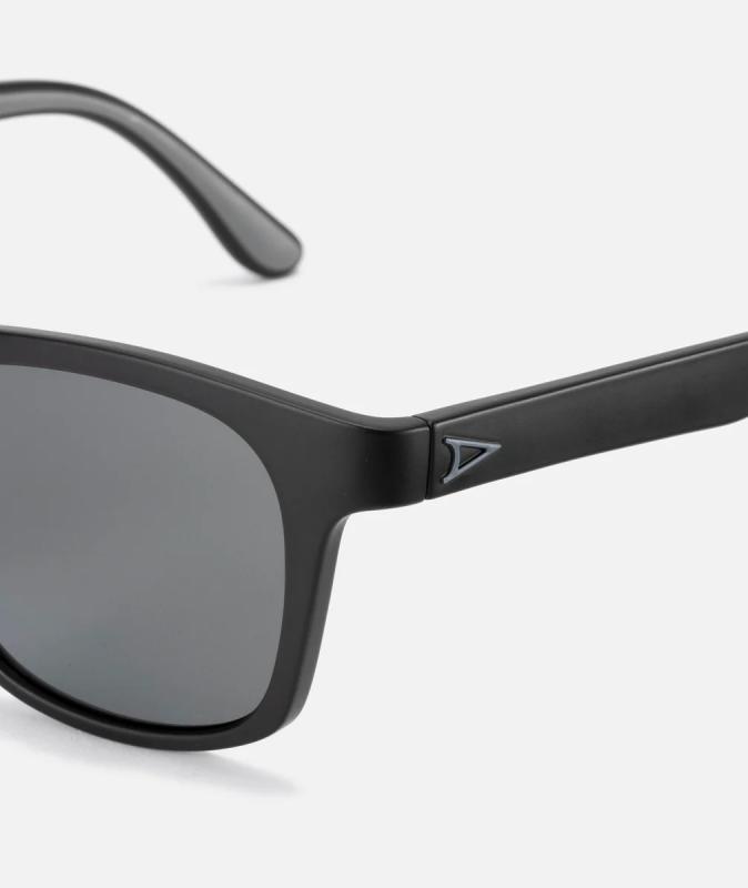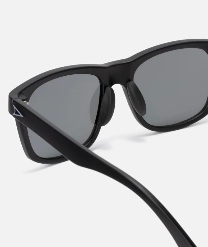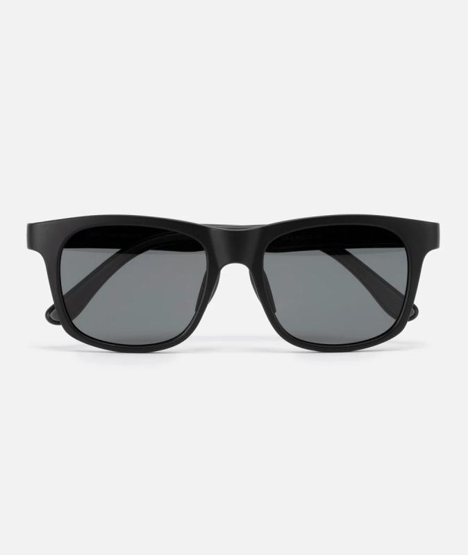 サングラスの定番、ウェリントンタイプのシェイプ。しっかりとしたサイズ感とボリューム感を持ちながら、全体のシルエットはスマートで力強い印象に仕上げられています。 フレームはマットブラック、レンズは反射光をカットし視界をクリアに見やすくする偏光レンズ。