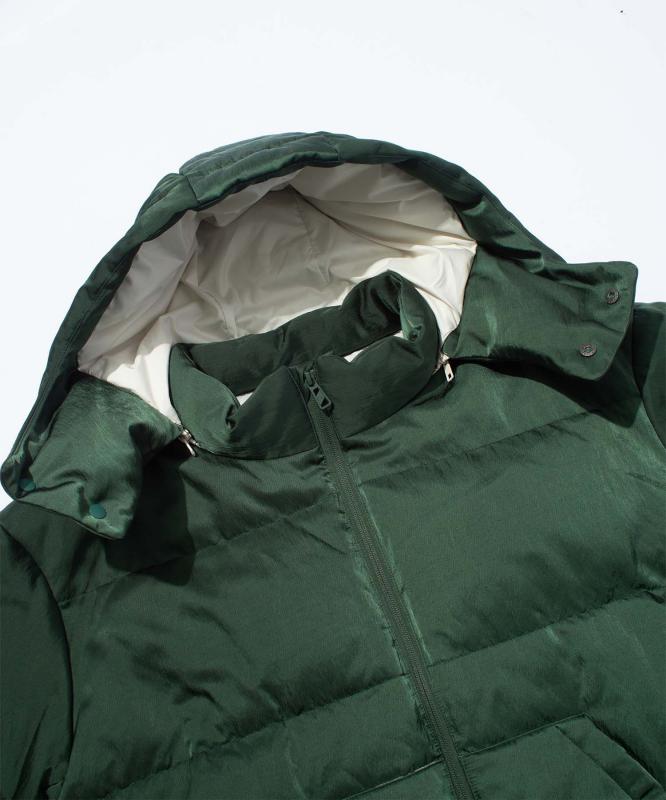 光沢感のある素材感が特徴的なダウンジャケット。