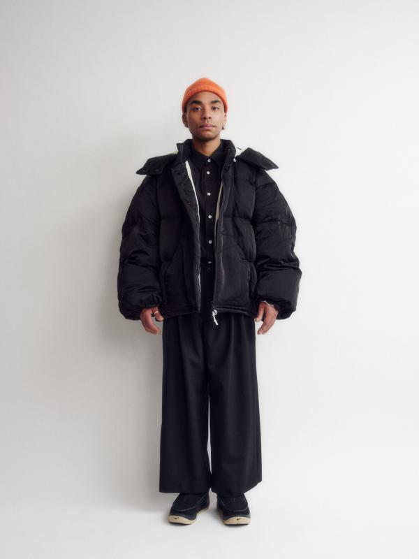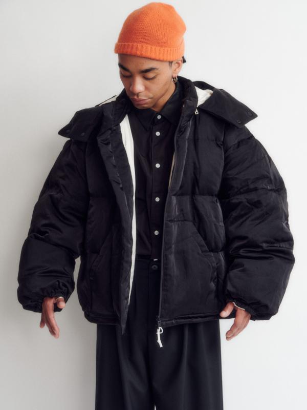 今回の協業では、毎シーズン好評のボリューム感のある型にファスナーで取り外し可能なフードを付けアップデート。