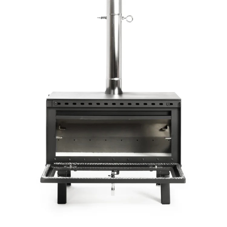 また、炎の状態がわかりやすく、吸気口や扉を開けて火力の調節ができるため、グリルとしても使いやすい構造です。