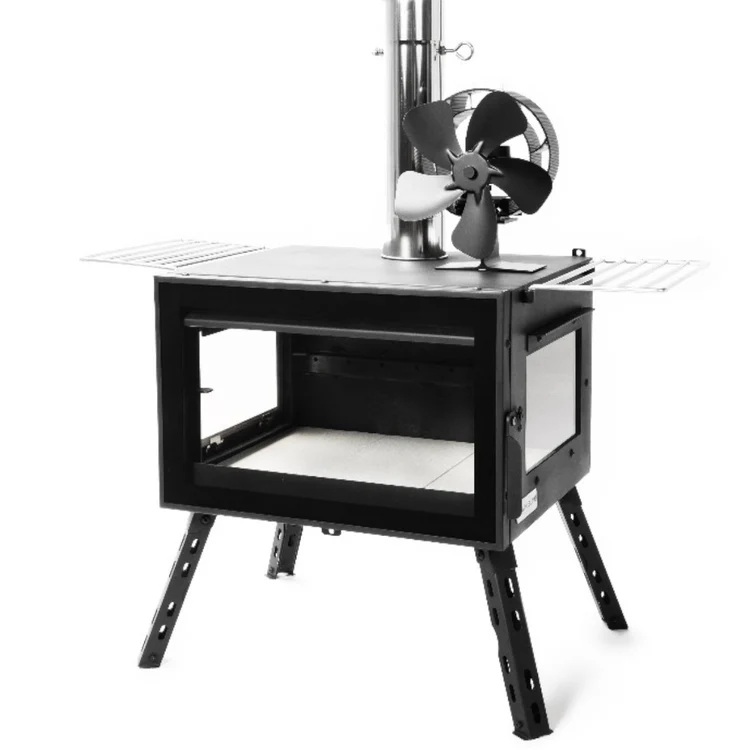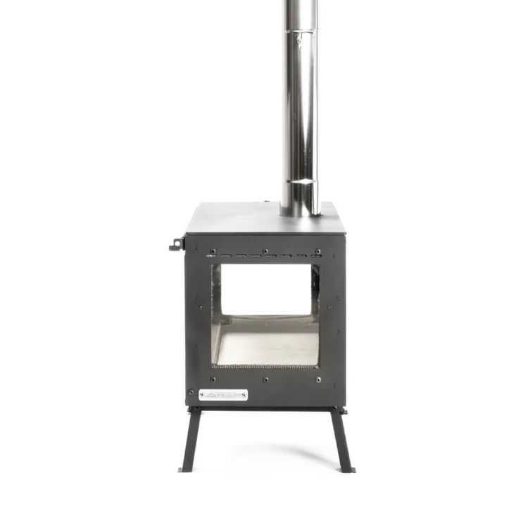 薪ストーブとして天板での調理はもちろん、天板を外すと二次燃焼構造の焚き火台としても使用でき、付属の焼き網を使えばグリル調理も楽しめる3WAYタイプ (※燃料に炭は使用できません) 。