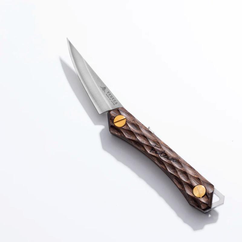 FEDECAトレイルナイフ は、調理も木工クラフトも釣りもこなす「山の恵みを遊び切る」ために生まれた 、新発想の山用ナイフです。