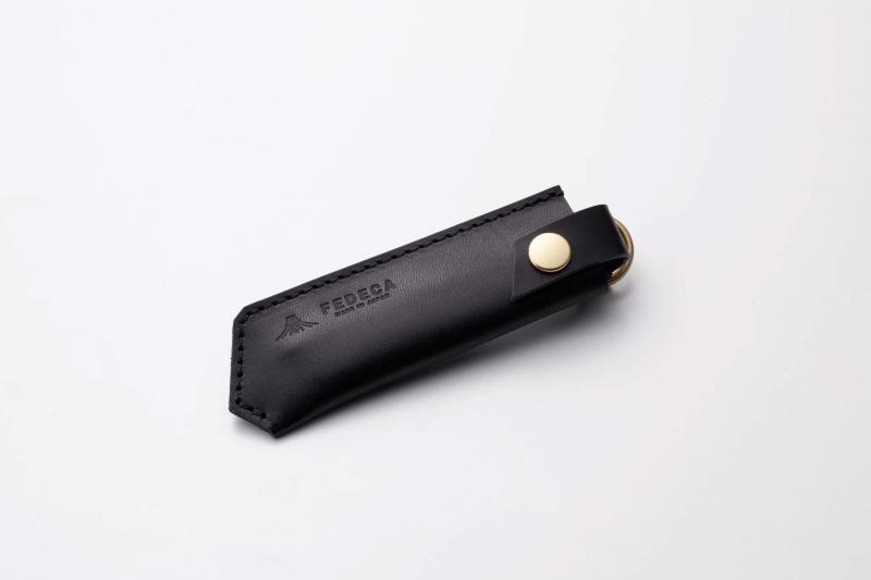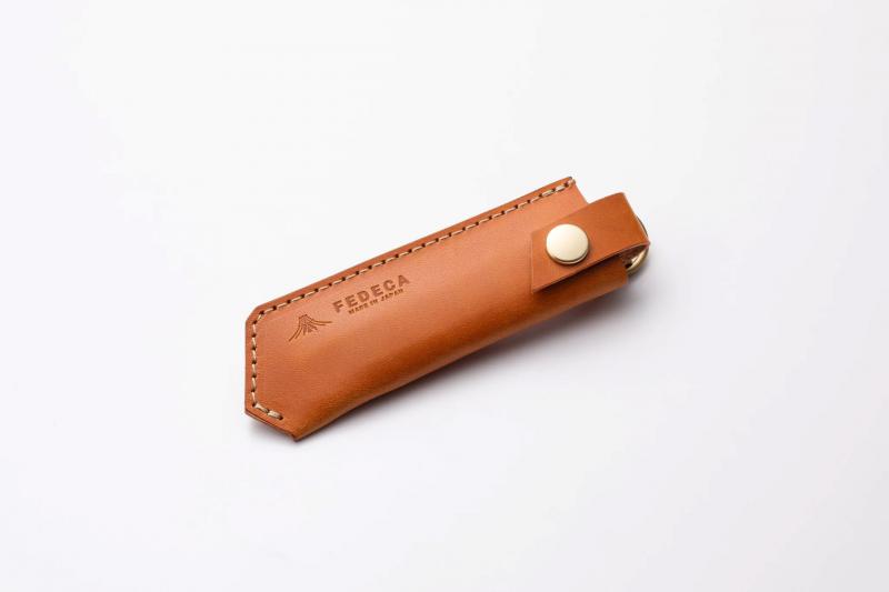 「姫路の革」×「豊岡の鞄」×「三木刃物」トリプルコラボが織りなす上質なレザーシースを、標準でお付けしております。