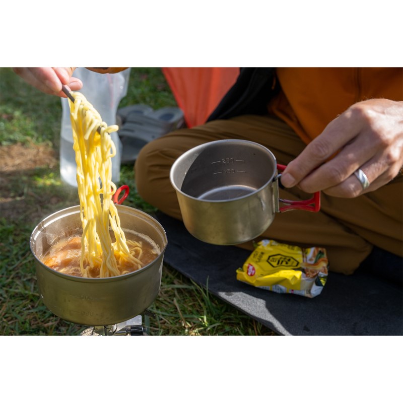 煮炊きから食事までをこの小さなカップで済ます事で得られる経験に山に向かう人々は魅了されているのではないでしょうか。