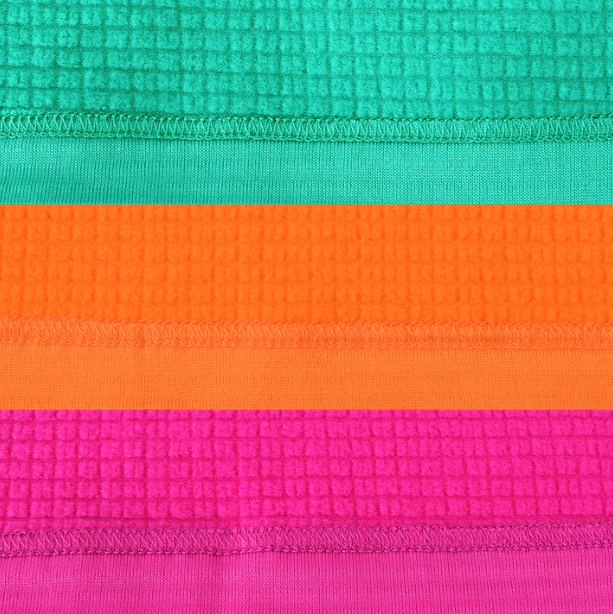 肌に触れる面がグリッド構造なので肌と本製品の間に空気の層を作り暖かさを保持します。