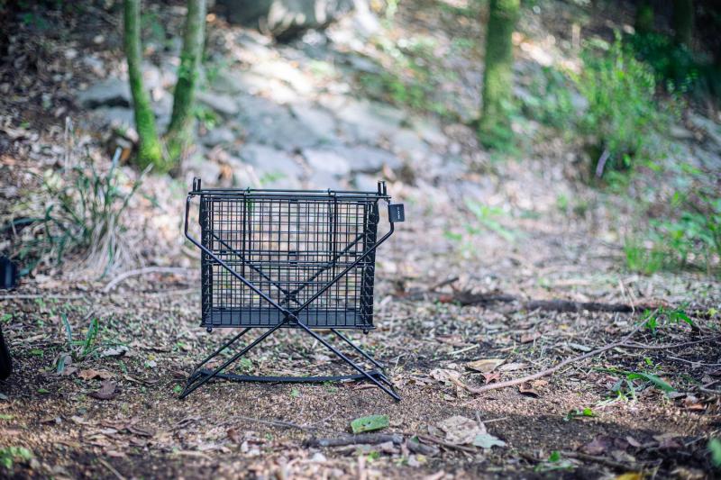 テントサイト内にギアボックスを置くためのラックなどを