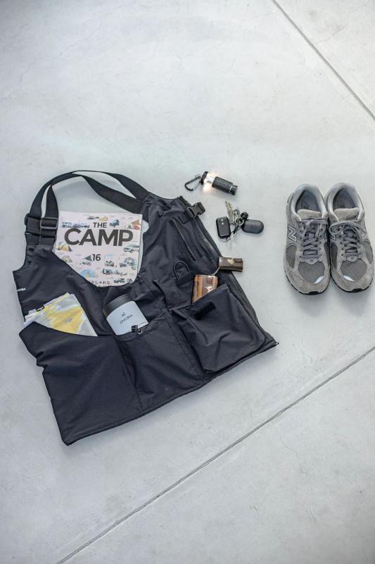 320ml缶ホルダーが入るほどのポケットサイズにすることにより、UVスプレーやカメラレンズなどの荷物も収納可能にしました。