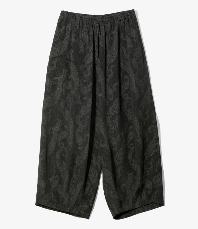 ウエストや裾に施されたダーツ処理によって、パンツ中央が大きく膨らんだ独特のワイドシルエットを生むNEEDLESの定番型。締め付けの少ないデザインが、非常にリラックス感のある履き心地を生み出します。肌触りの良いレーヨン素材は、着用した際に現れるドレープが美しい素材です。