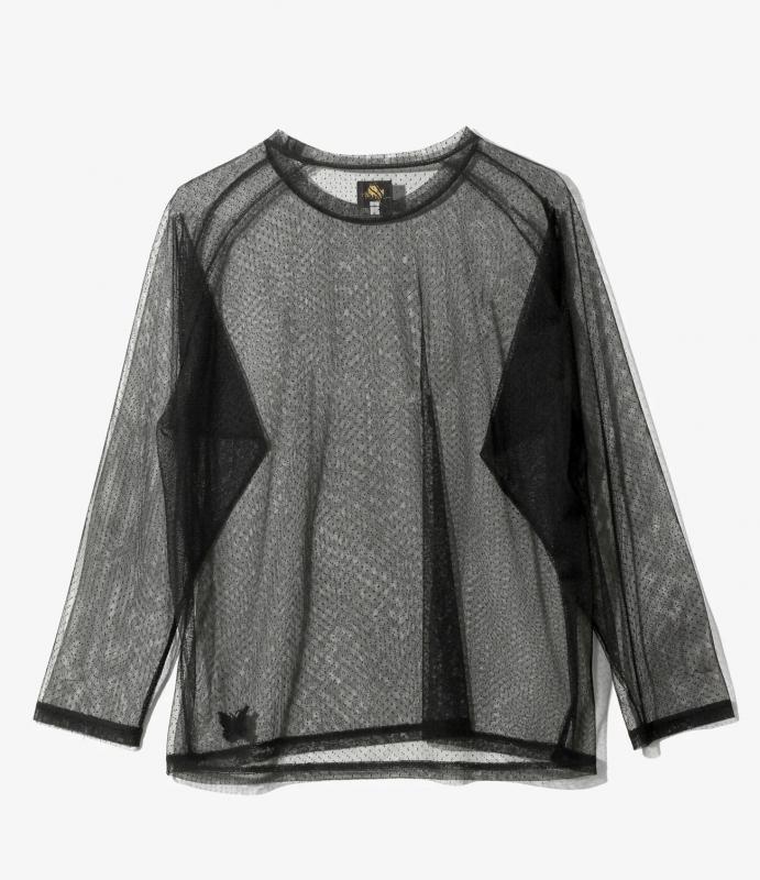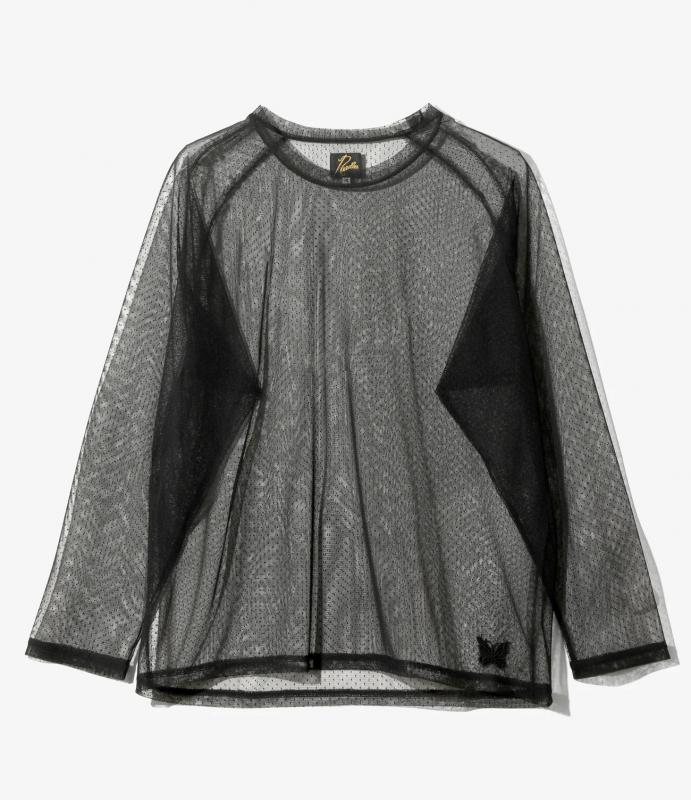 軽量で透け感があり、レイヤード次第で様々なコーディネートがお楽しみいただける定番のUネックTシャツ。繊細なチュール素材を使用し、夏に活躍する一着です。