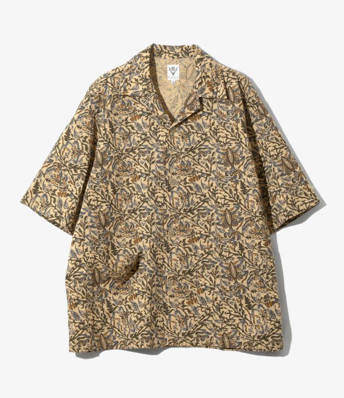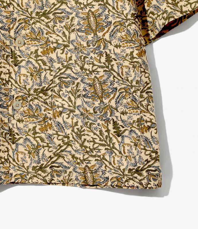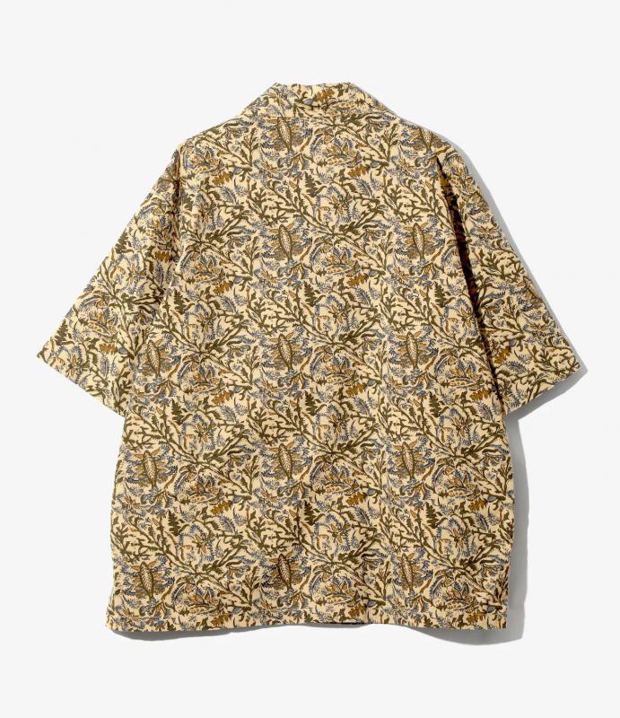 オープンカラーにワイドなボックスシルエット、やや長めに設定されたハーフスリーブなど、シンプルながらリラックス感漂うデザインのカバナシャツ。個性的で表情豊かな一枚に仕上げました。薄手のコットン100%素材を使用し、通気性がよく快適な着心地です。エスニックなムードを漂わせるプリントを施したインドファブリックで、個性的かつ表情豊かな一着に。