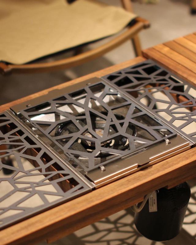1/f柄(1/f SPACEのロゴが隠れた不規則な直線柄)の五徳です。