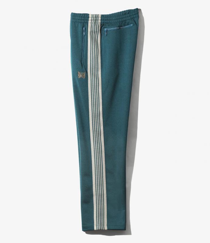〈NEEDLES〉定番のトラックパンツが26年春夏シーズンの新色で登場。今シーズンはラスト、グリーン、チャコールの全3色です。伸縮性や通気性に富んだポリエステルジャージー素材を使用した快適性に優れたアイテム。独特の配色や刺繍デザインなど、一般的なスポーツウェアとは一線を画した華やかなファッション性が魅力となっています。豊富なシルエットのバリエーションで展開されておりますが、最もオーソドックスな、ややワイドなストレートシルエットです。