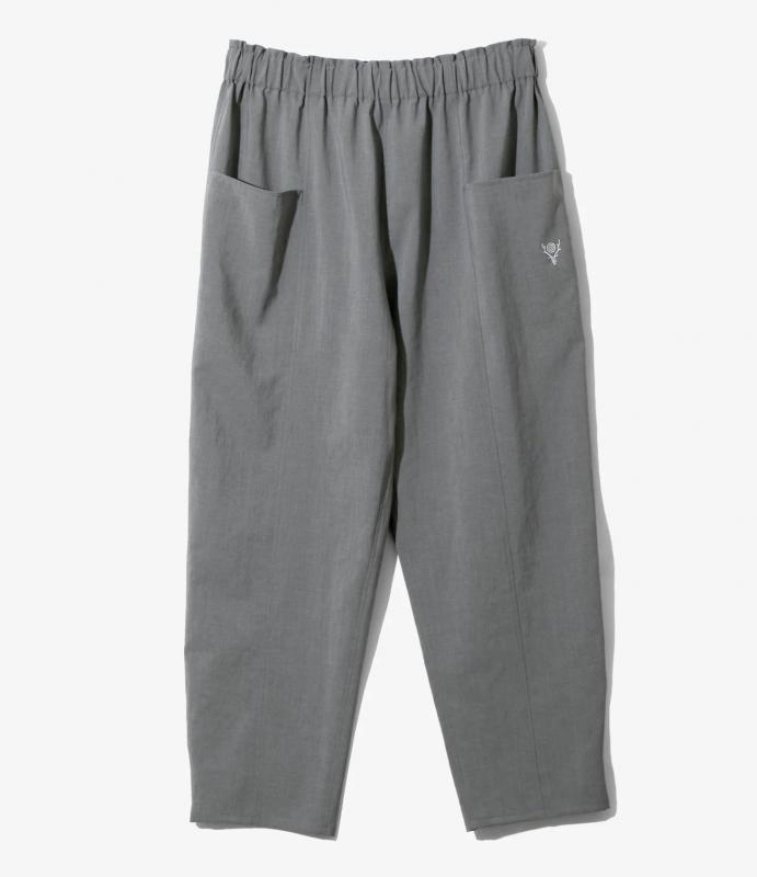 ゆとりのあるワイドテーパードのシルエットと、ユニークな縦長の形状のサイドポケット、リラックス感のあるストリングウエストなど、特徴的なディテールが光る定番型のイージーパンツ。ポリエステルのオックスフォード織り素材は通気性がよく、さらりとした涼感のある肌触り。非常に春夏らしい一本に仕上がっています。