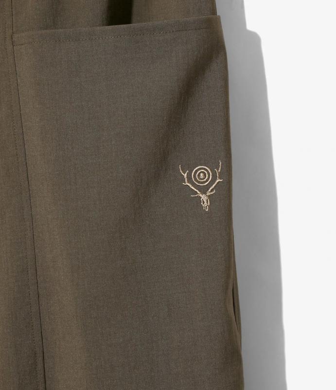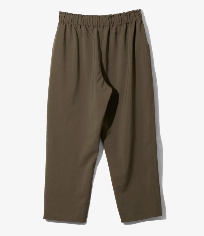 ゆとりのあるワイドテーパードのシルエットと、ユニークな縦長の形状のサイドポケット、リラックス感のあるストリングウエストなど、特徴的なディテールが光る定番型のイージーパンツ。ポリエステルのオックスフォード織り素材は通気性がよく、さらりとした涼感のある肌触り。非常に春夏らしい一本に仕上がっています。