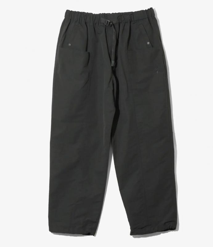 リラックス感のあるワイドシルエットが特徴的な定番型のセンターシームパンツ。今季はクラシックなアウトドアウェアのムード漂うコットン/ナイロンの混紡素材でのリリースです。ウエストにはダブルリングのウェビングベルトが付属。両脚センターのトリプルステッチのシーム、重なるように取り付けられたサイドポケットなど、印象的なディテールを多数備えています。裾にはドローコードも取りつけられており、パンツのレングスをアレンジした着こなしも可能。同シリーズからはジャケットも展開されており、セットアップでの着用も可能です。