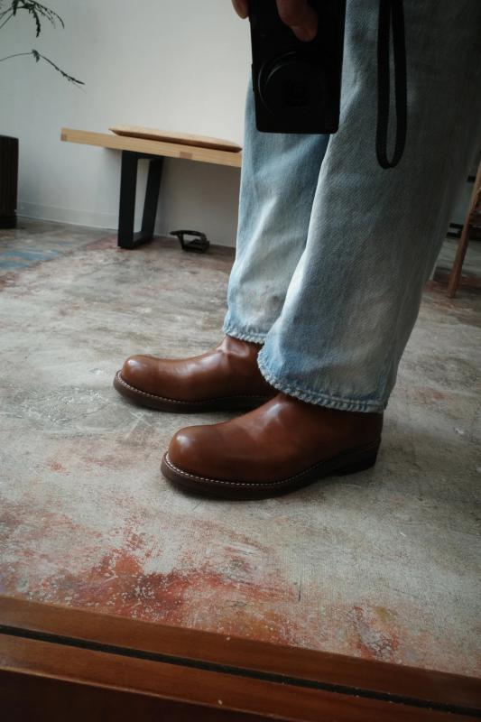 こちらはイタリアの老舗タンナーのホースフロントレザーを用いた一足です。