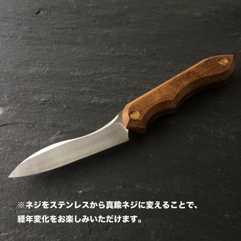Folding knife シリーズのネジをステンレスから、 経年変化をお楽しみいただける真鍮ネジに着せ替えできます。